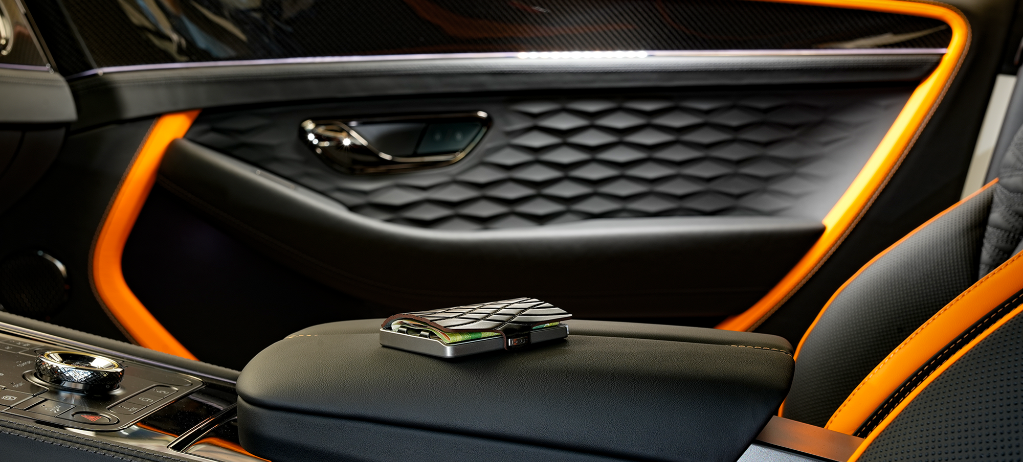 Das elegante Ledercover legt sich über den Inhalt und wird durch einen Druckknopf mit dem Rahmen vereint, sodass Karten sowie Geldscheine vor Beschädigung und Verlust geschützt sind.