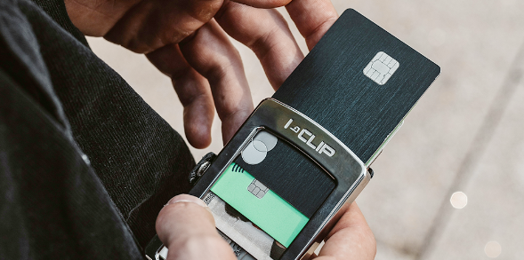 I-CLIP Acier Inoxydable Poli avec Compartiment à Monnaie Noir