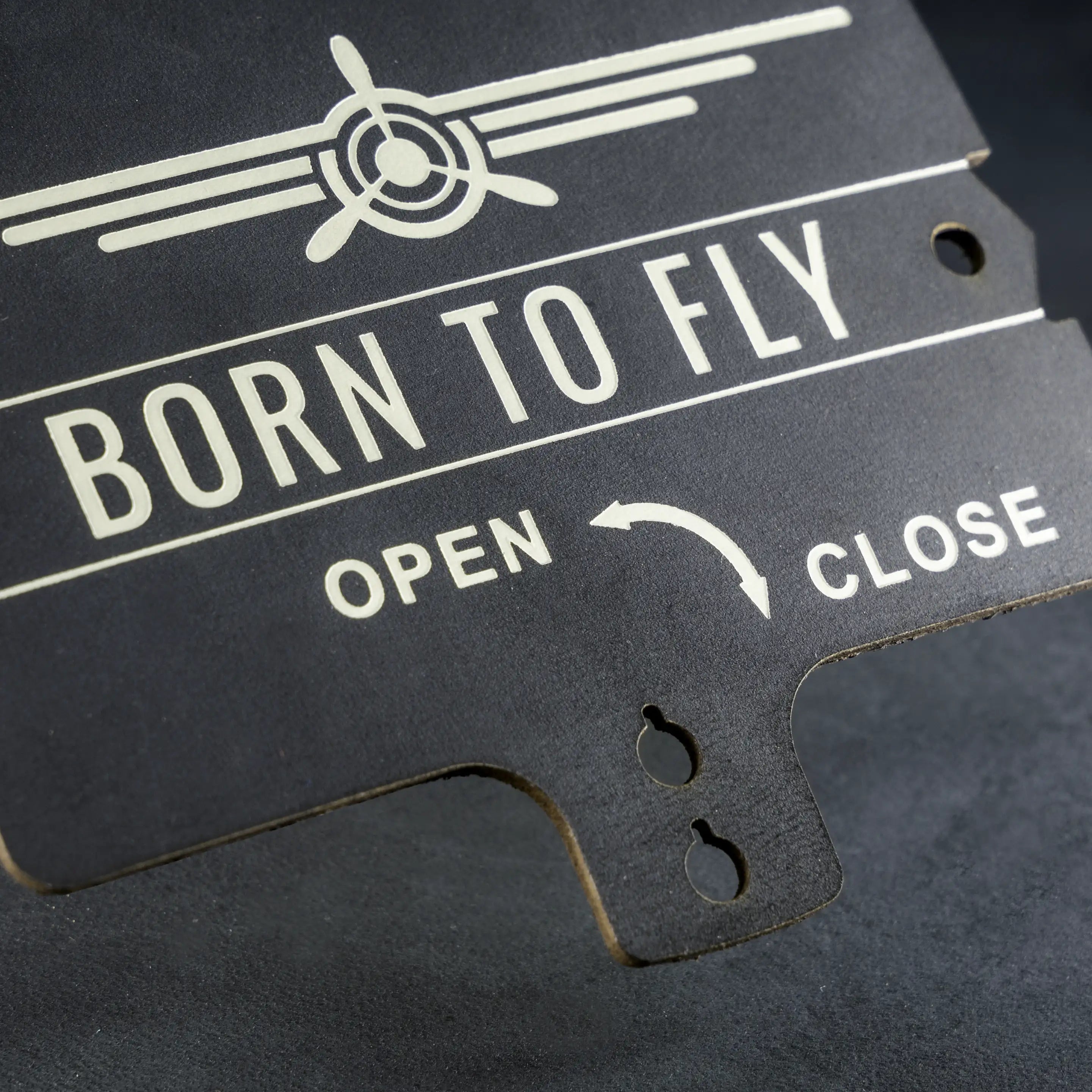 Ce I-CLIP est un hommage à notre développement produit de 2014. Le concept « Retro » n’a jamais existé avec I-CLIP, car il a été inventé avec une fermeture en 2015. Nous incarnons l’époque actuelle et la modernité. En 2014, l’idée d’un système à fermeture par pression n’était pas encore née, comme en témoignent certains de nos premiers prototypes. L’idée initiale était de transférer la légèreté de l’I-CLIP et l’appétence pour « un peu plus d’argent » dans l’aviation. À cette époque, I-CLIP aurait pu s’appeler Pilot. Heureusement, l’idée de la fermeture pressée est venue. Le modèle spécial Born to Fly fut demandé par notre vendeur lors des salons 2023 à Friedrichshafen pour une édition spéciale aviation avec davantage de billets et une ligne Retro Style de boucles ceintures. Dans de nombreux aspects, ce modèle s’harmonise avec son motif de couleurs noir et crème, même s’il n’existait pas encore, pour le I-CLIP ultra-moderne de l’époque 1950–1970, avec ce design et cette typographie.