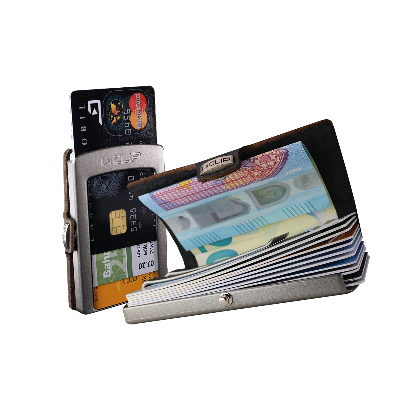 Der I-CLIP Geldbeutel ermöglicht es Dir, das Wesentliche stilvoll und effizient zu transportieren. Mit seinem intelligenten Design bietet er ausreichend Platz für Karten und Geldscheine, ohne dabei voluminös zu wirken. Das bedeutet, dass Du dich auf das konzentrieren kannst, was wirklich wichtig ist, ohne von unnötigem Ballast eingeschränkt zu werden.